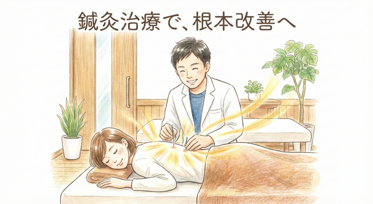 北九州市小倉北区のだるま整骨院です。長引く肩こりや腰痛に効果的な鍼灸治療のメリットを解説。痛みの少ない極細鍼で、深部のコリや自律神経の乱れを解消します。 -