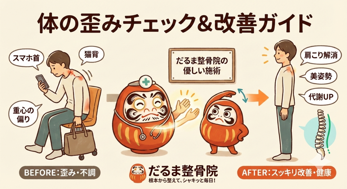 【体の歪みチェック 肩こり・腰痛の原因は?だるま整骨院が教える根本改善ガイド