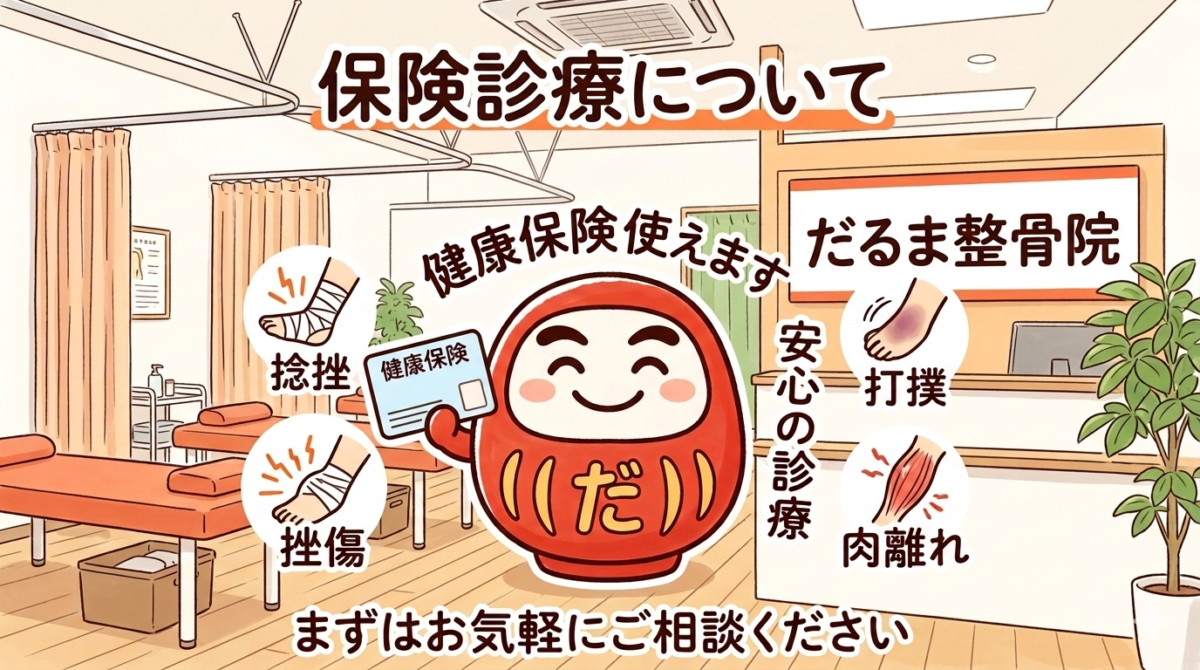 北九州市小倉北区だるま整骨院では健康保険を使用した保険治療も行っております。