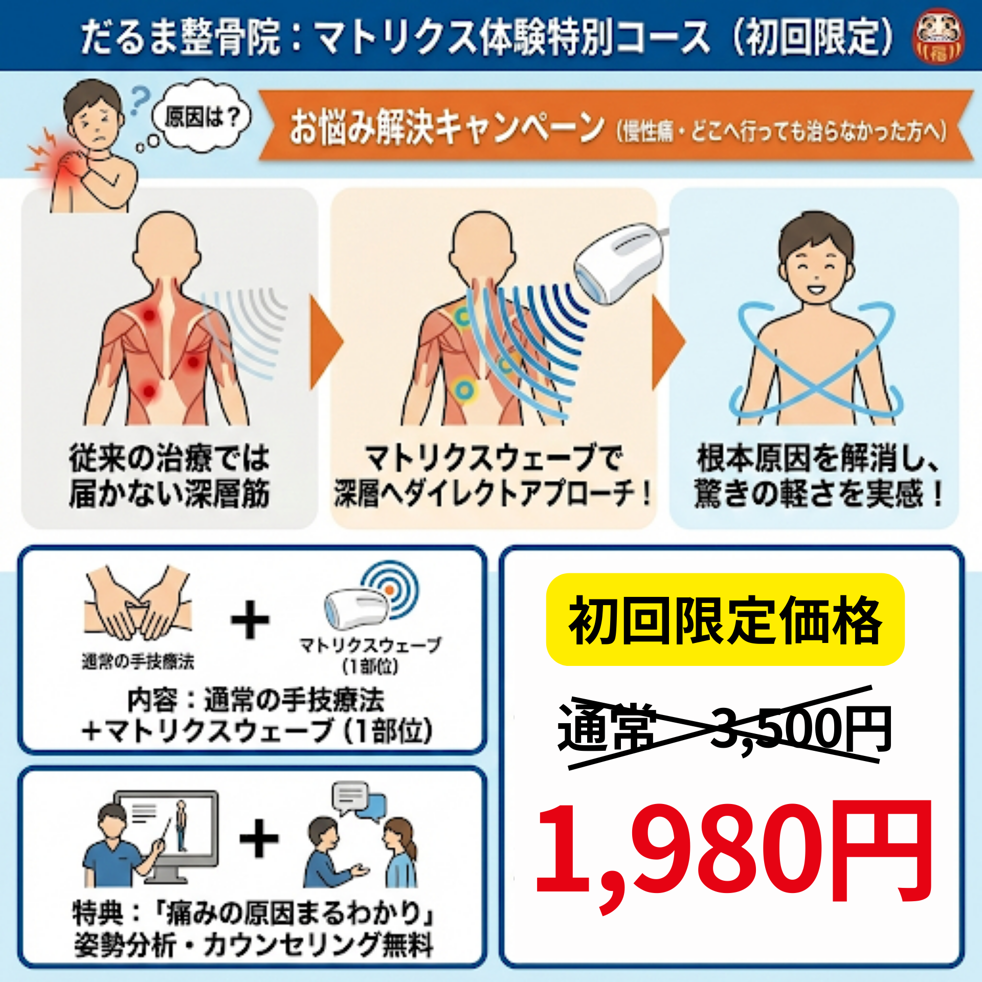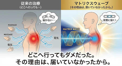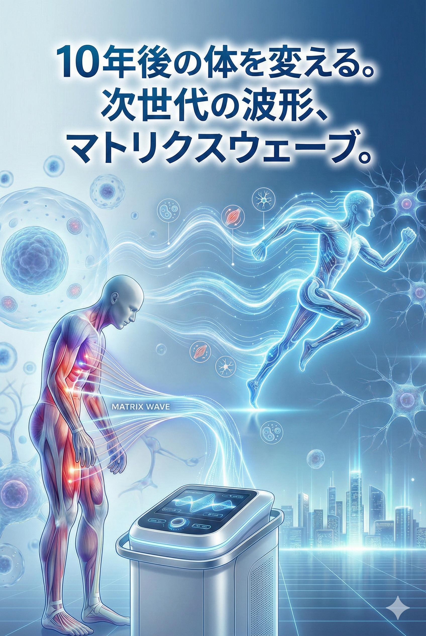 マトリクス施術とは、「直流波形」に近い特殊な波形を発生させる次世代の電気治療器「マトリクスウェーブ」を用いた、身体の深部と神経系に特化したアプローチを行う施術のことです。