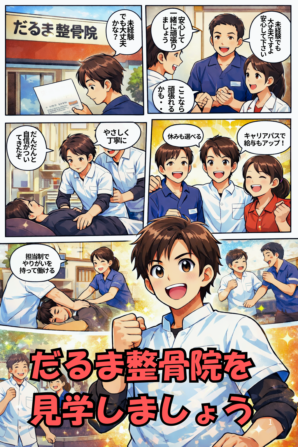 動機は何でも構いません。だるま整骨院には、あなたの挑戦を全力で面白がり、応援する仲間がいます。